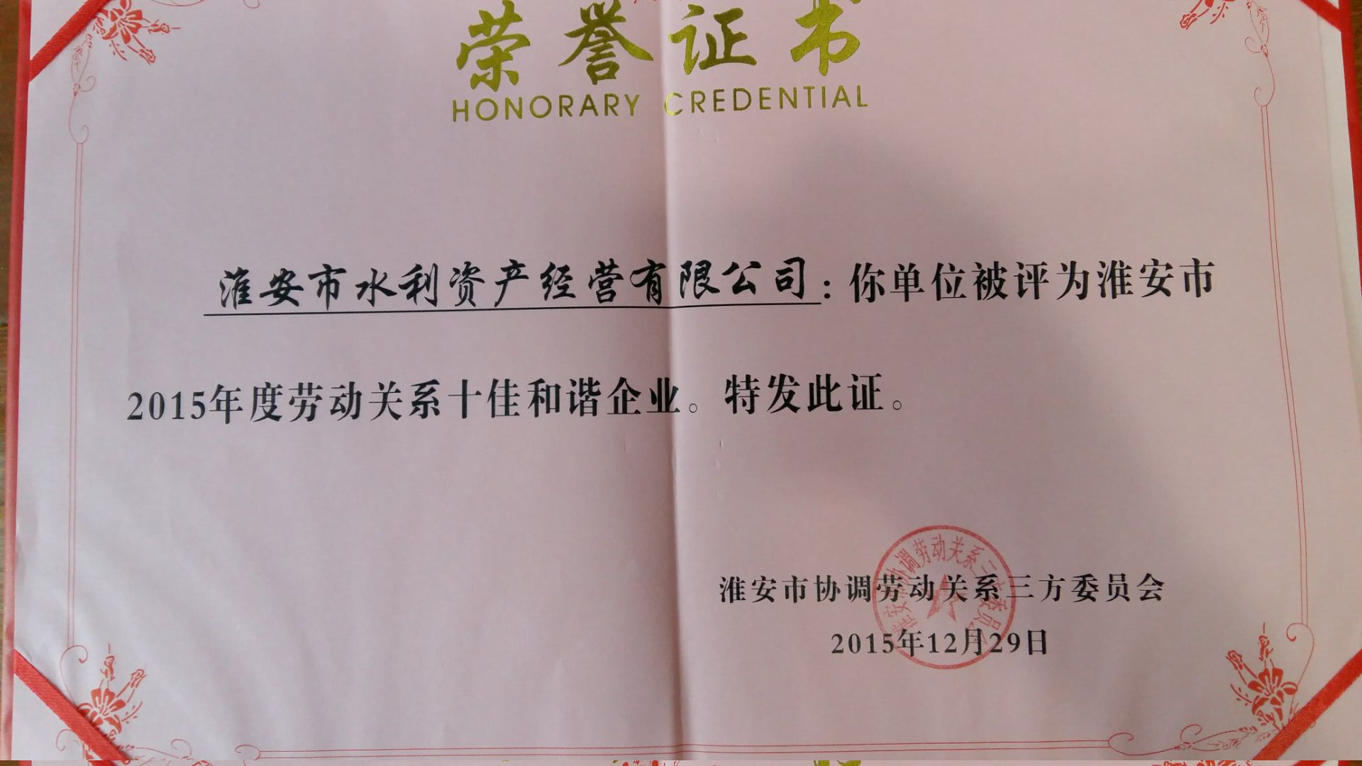 2015年度勞動(dòng)關(guān)系十佳和諧企業(yè)